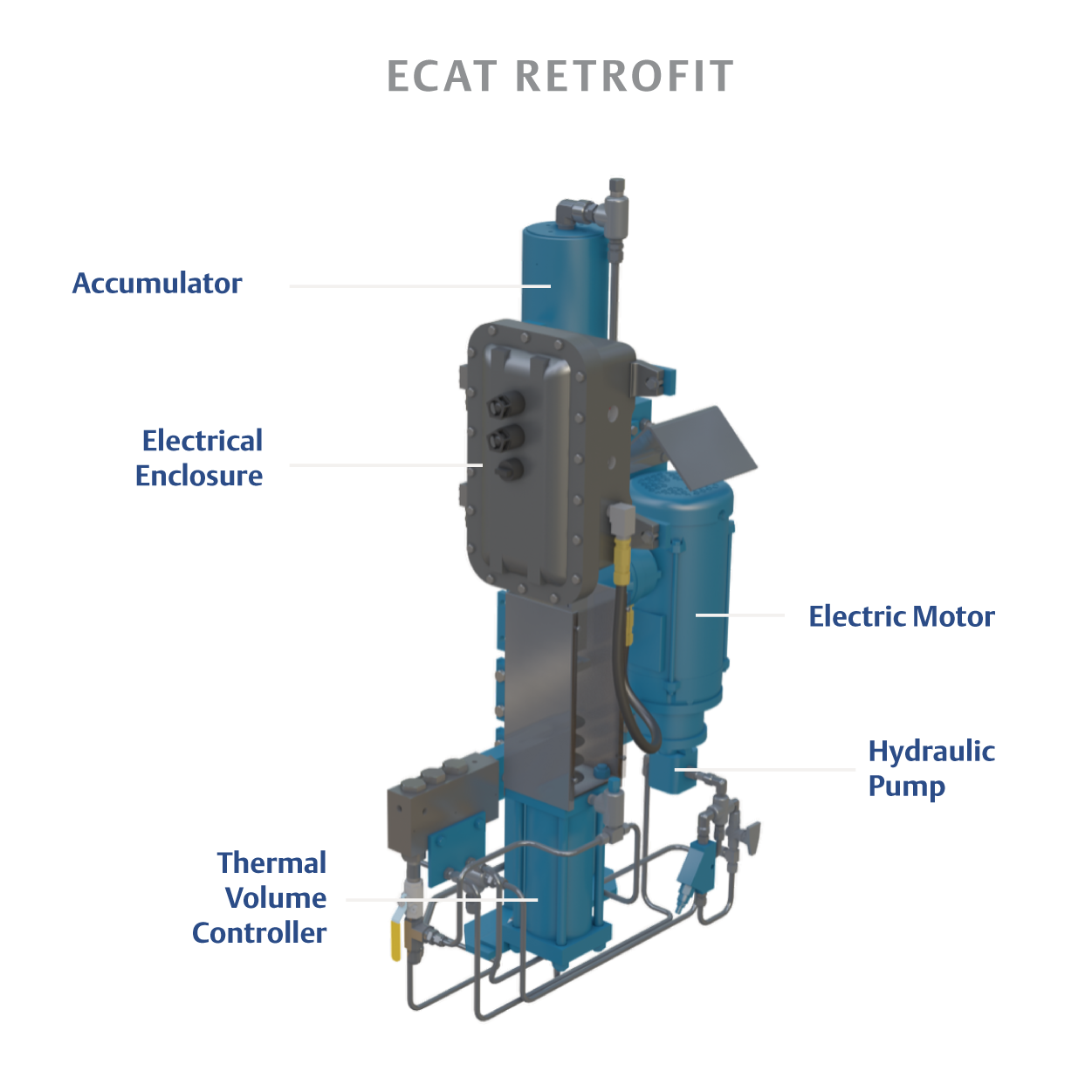 The ECAT system utilizes a compact electro-hydraulic motor and pump as the energy source to re-inject power gas back into the pipeline. Following valve operation, the motor/pump will automatically start, forcing hydraulic fluid back into the accumulator. As the accumulator fills with fluid, the power gas is re-injected back into the pipeline. The motor only runs for a short time during the gas re-injection process. Once the gas re-injection process is complete, the motor automatically stops and the system remains in a fully charged “ready to stroke” state awaiting a command to open the valve. When an open command is received, the control directs the flow paths to rotate the actuator in the counter-clockwise direction and the gas re-injection process repeats.
