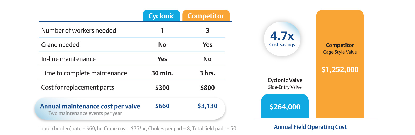 Looking for an innovative low maintenance choke valve solution for your application? Cyclonic offers both in-line and angle body patterned valves, that are quick to actuate (2-3 seconds from open to close) and can be designed to fit existing equipment, requiring NO piping changes or equipment design changes. Because the valve is manufactured from a solid piece of steel, it is exceptionally resistant to wear and tear in corrosive conditions.