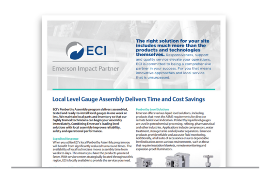 As an Emerson Impact Partner, ECI’s technicians are trained to assemble gauges to factory specifications. The same high quality you expect from Emerson is available to you in this region. Your ECI team can also complete level gauge surveys by walking your site to identify needs and review existing equipment regardless of the current installed brand.
